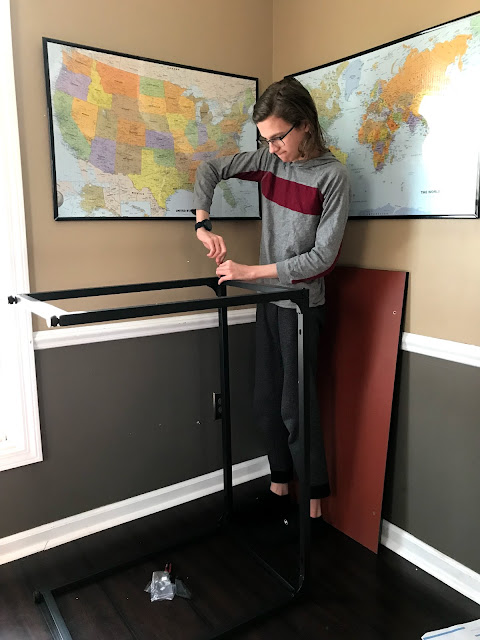 I'm realizing that I didn't actually take very many pictures this week. I did get a photo of one teen boy putting together a new desk for another teen boy. After a semester holed up in his room studying, College Boy decided that it might be better for his mental health to have the option of doing his schoolwork downstairs. Meaning his mother strongly encouraged him to consider that spending some time outside of his room this semester would be better for his mental health and he acknowledged that I was probably right.
